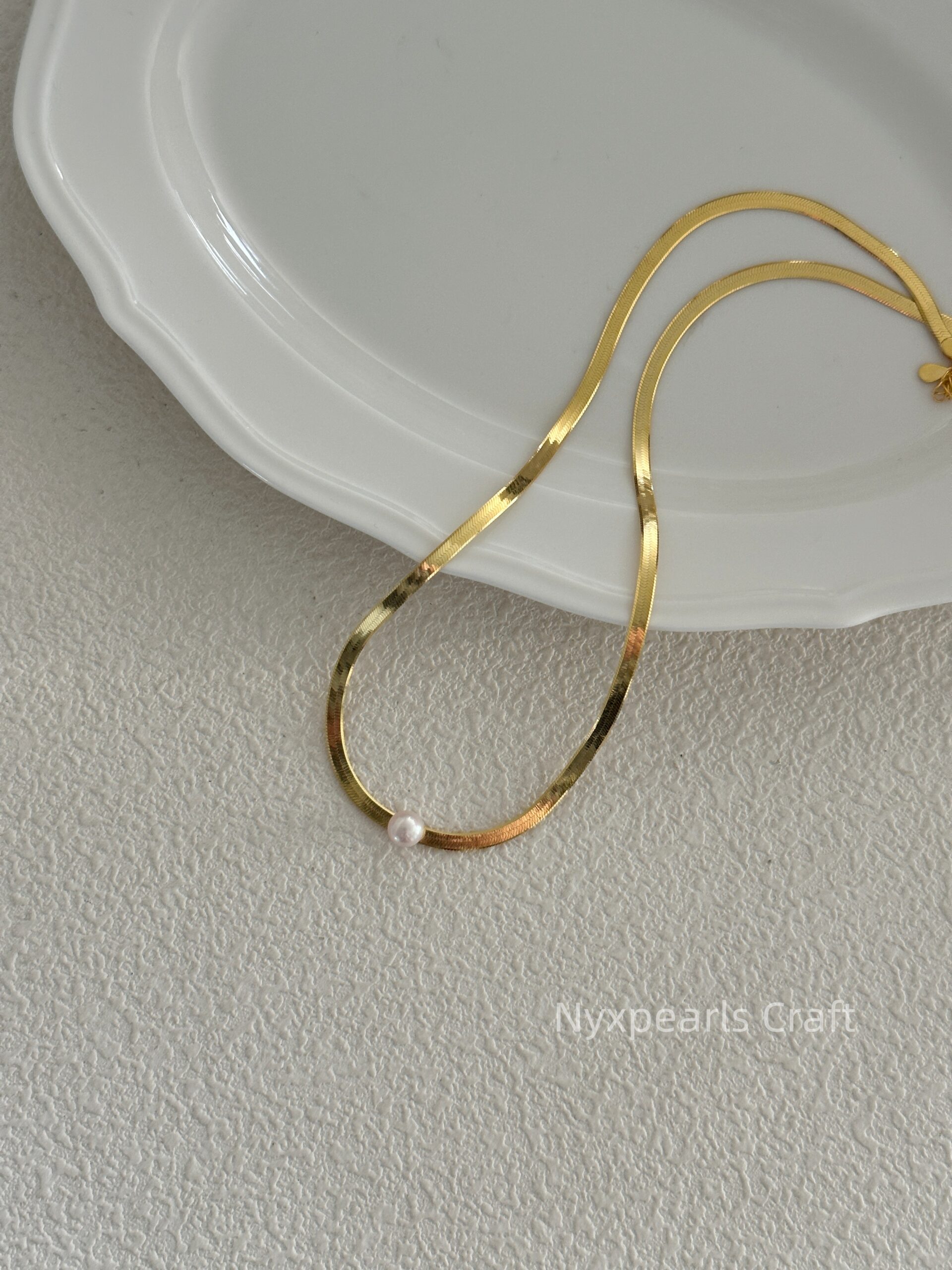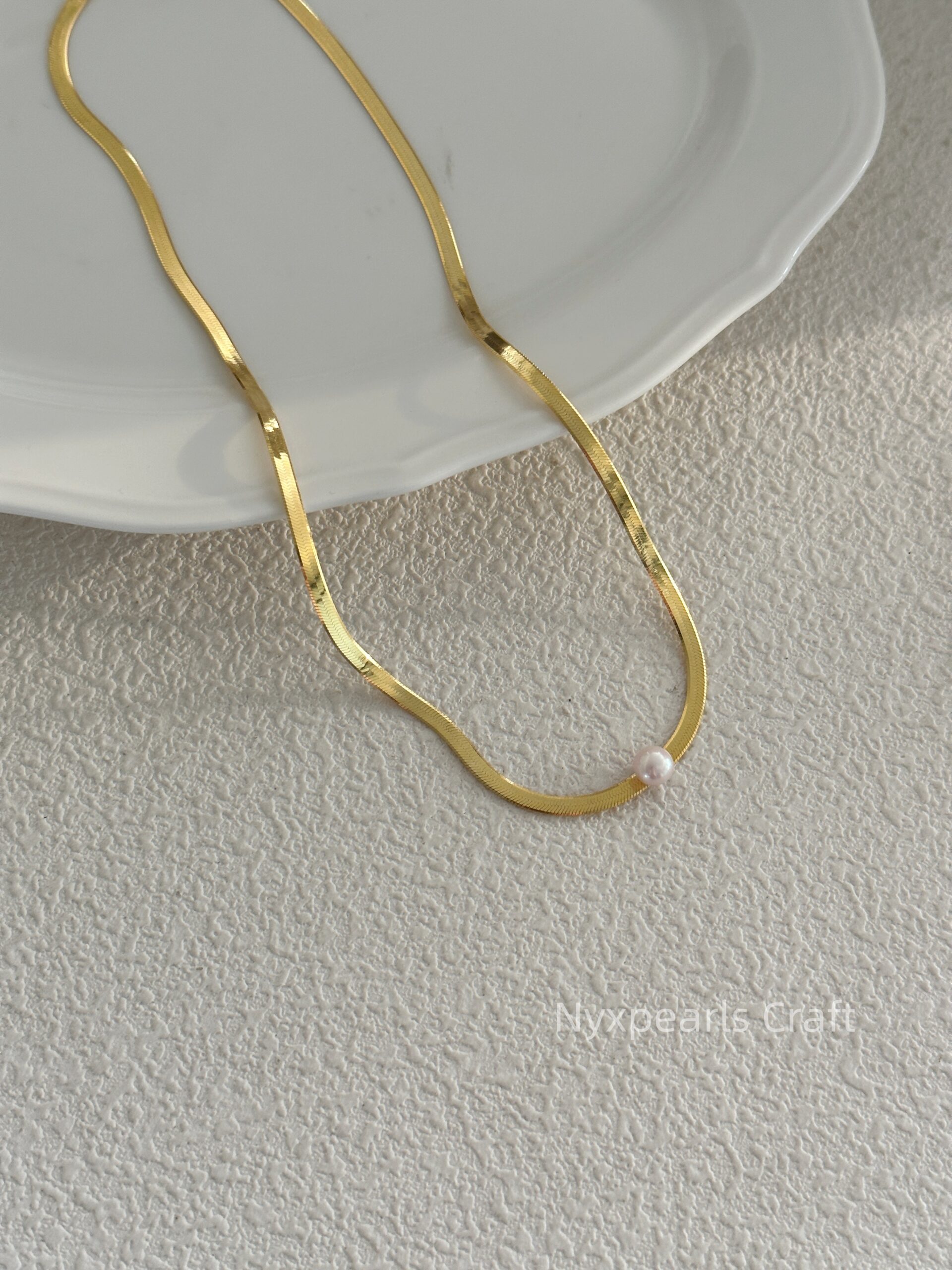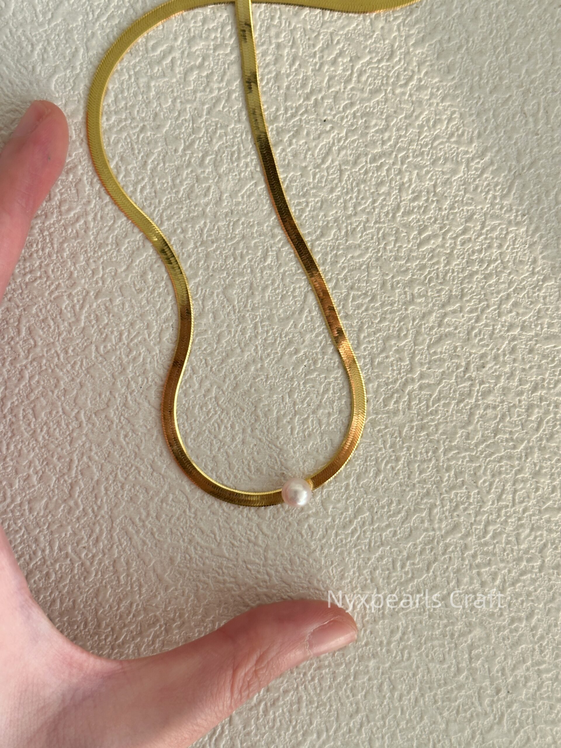 This elegant necklace features a luminous single pearl gracefully set on a sleek snake chain. Crafted from high-quality 18K gold-plated silver, the smooth, fluid design of the chain adds a contemporary touch to the timeless beauty of pearls. A perfect choice for those who appreciate minimalist luxury with a refined finish.