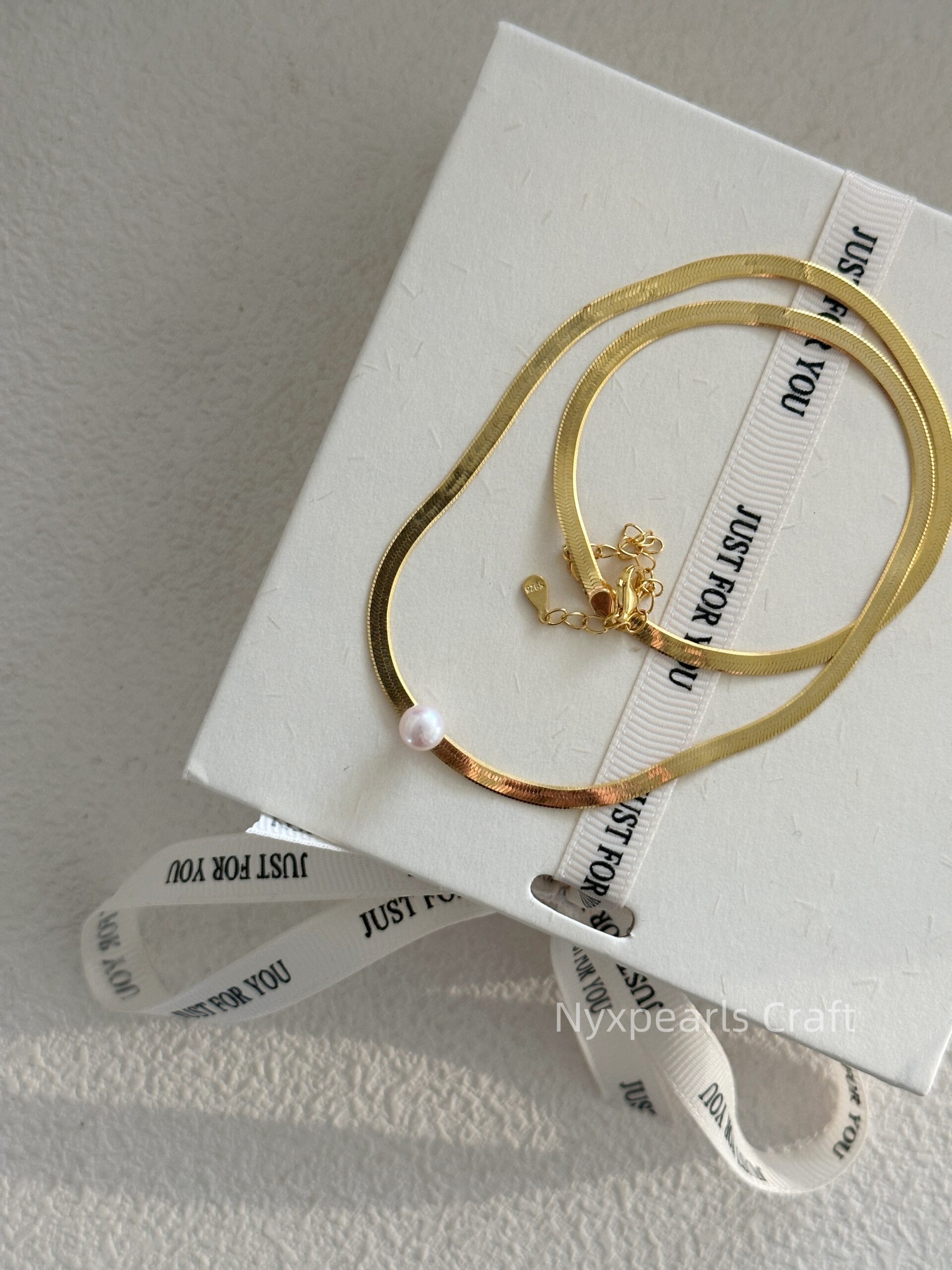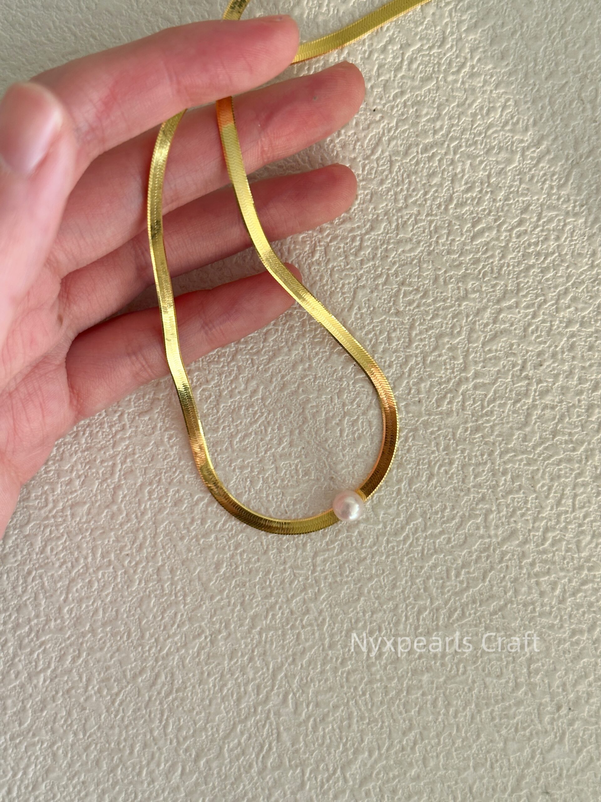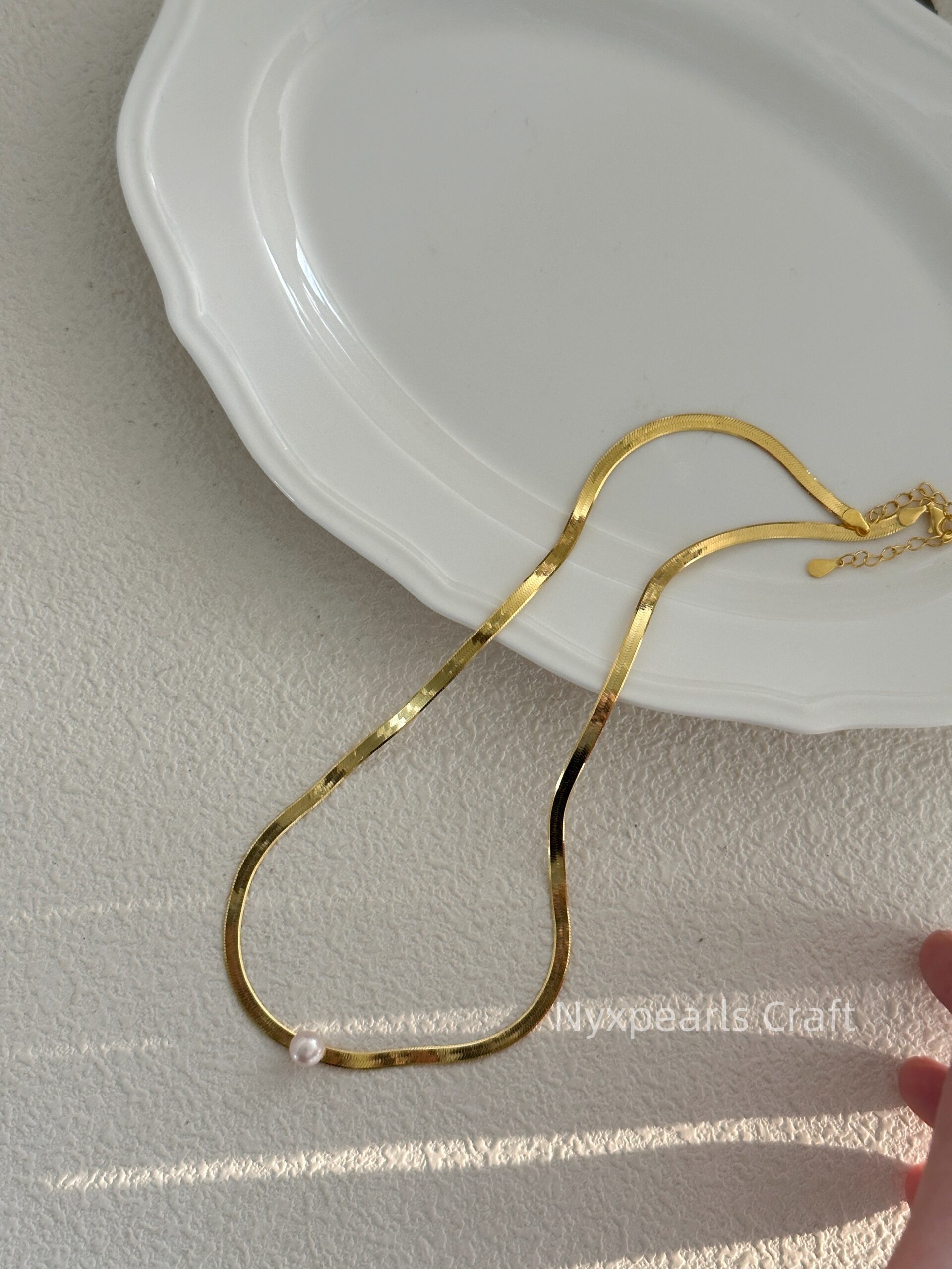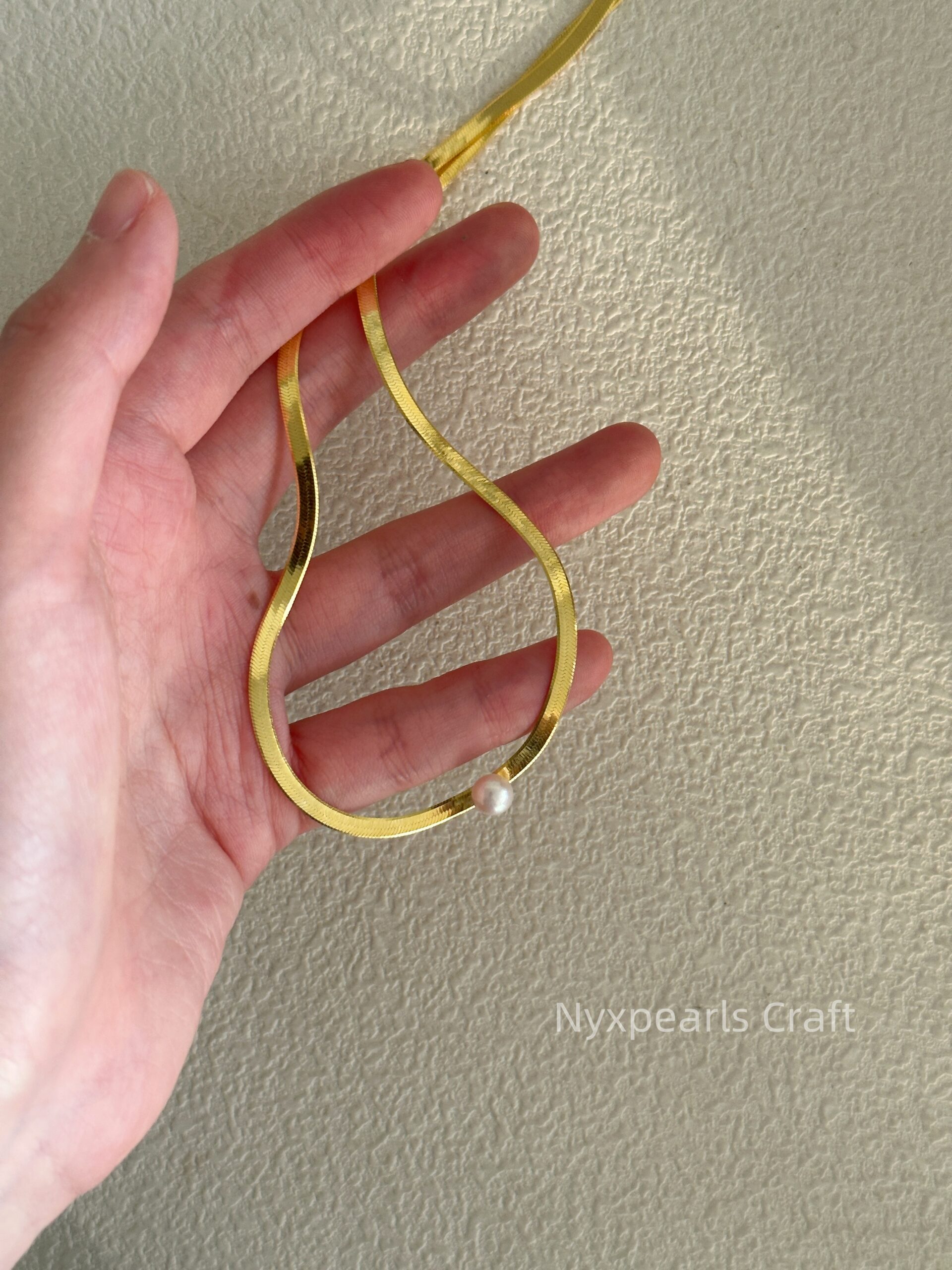 This elegant necklace features a luminous single pearl gracefully set on a sleek snake chain. Crafted from high-quality 18K gold-plated silver, the smooth, fluid design of the chain adds a contemporary touch to the timeless beauty of pearls. A perfect choice for those who appreciate minimalist luxury with a refined finish.