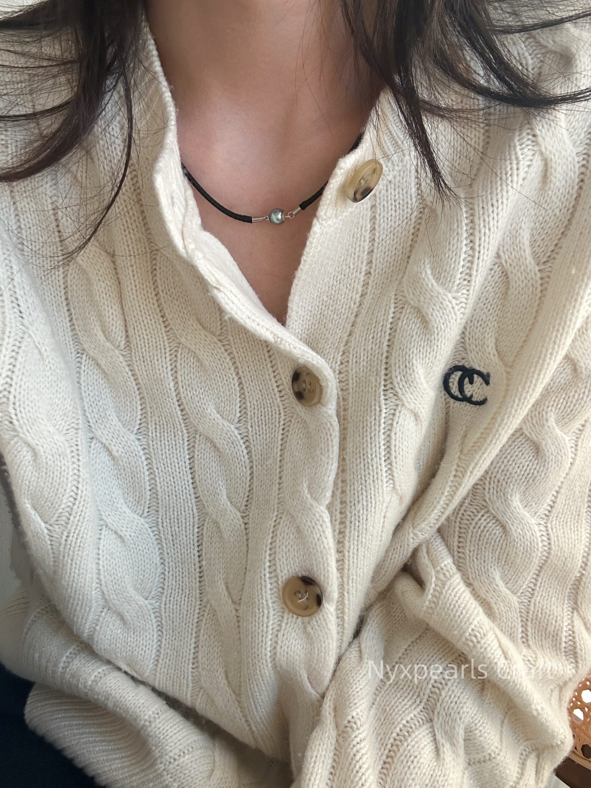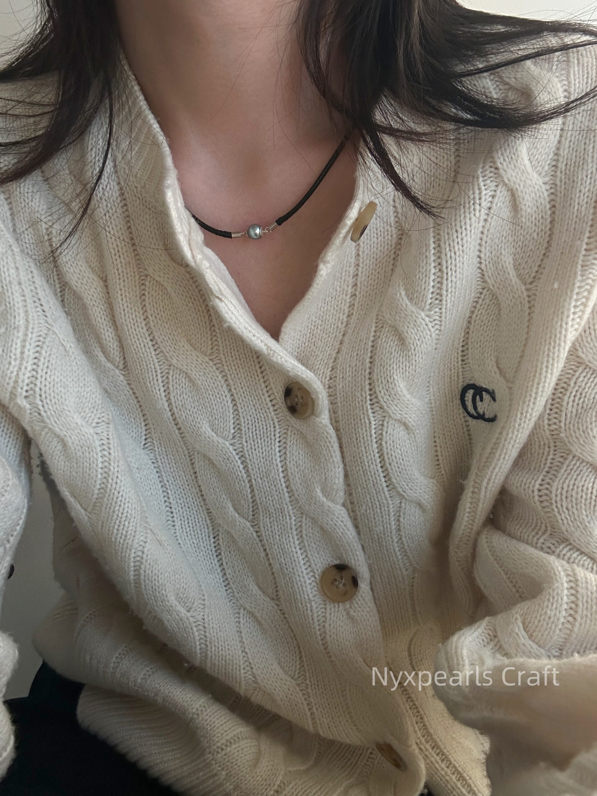 This refined necklace features exquisite seawater Madama pearls, each with a natural luster and unique charm. The combination of a sleek black cord and high-quality 925 sterling silver creates a modern yet timeless aesthetic. A perfect accessory for those who appreciate understated elegance with a touch of sophistication.
