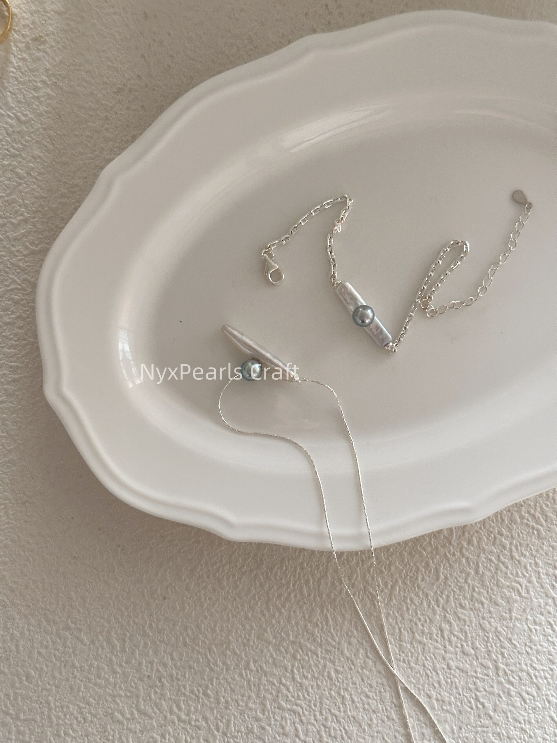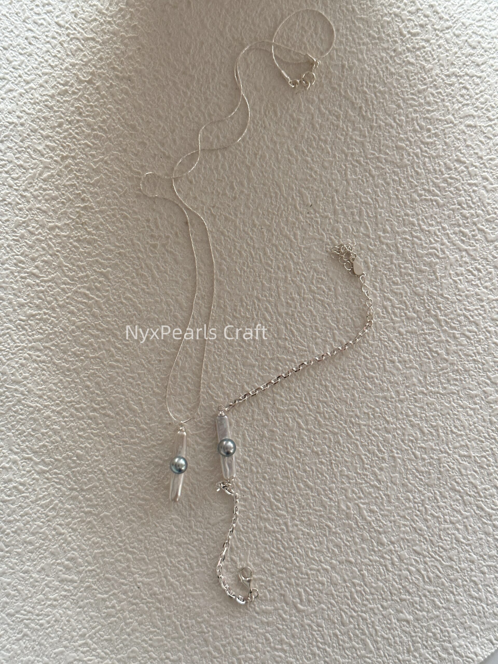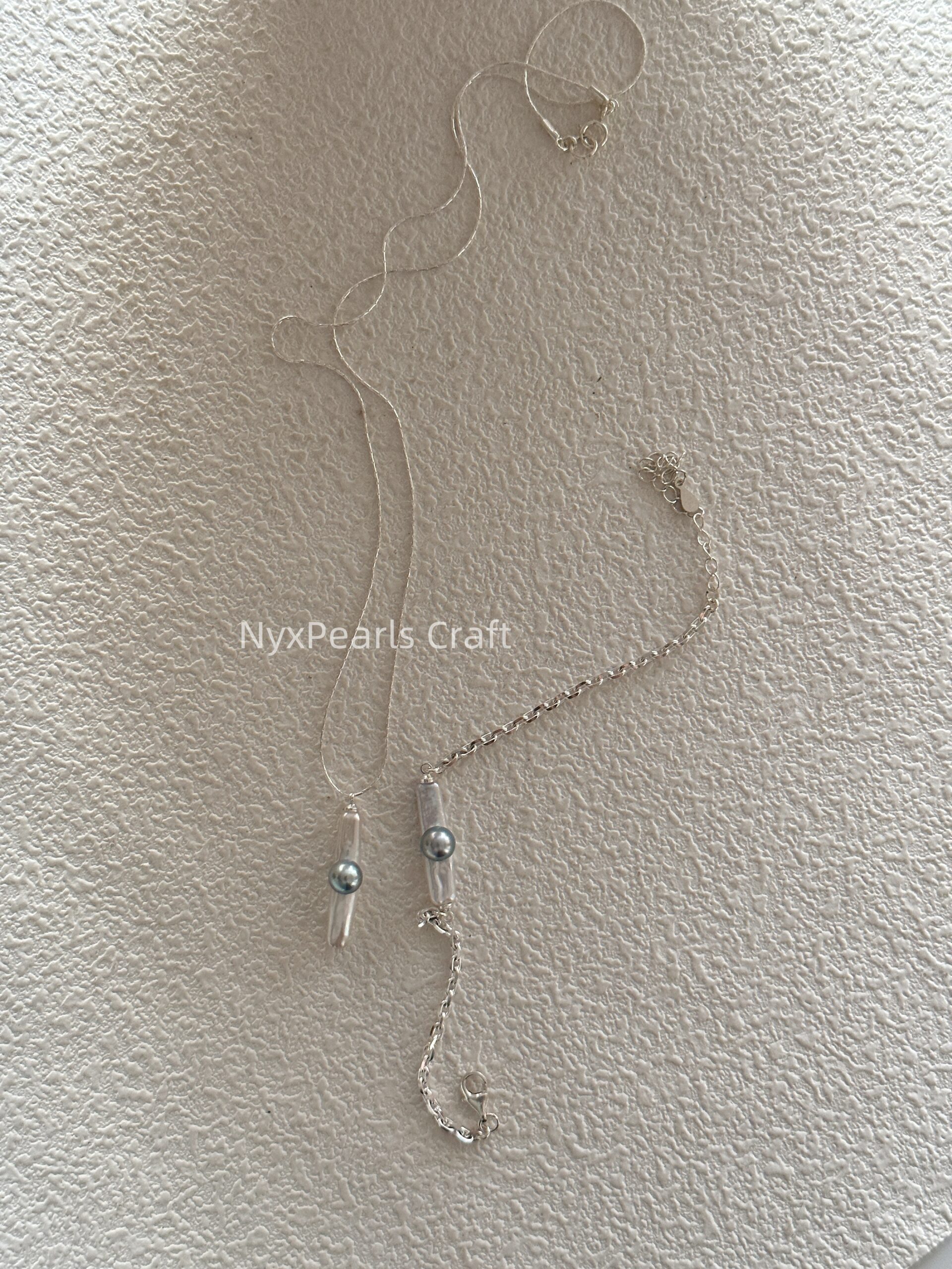 This exquisite necklace combines the natural beauty of freshwater baroque pearls with the luxurious allure of saltwater Tahitian pearls. Designed with a sleek silver bar accent, it creates a refined balance of modern elegance and organic charm. Crafted entirely from high-quality 925 sterling silver, this piece is perfect for those who appreciate timeless sophistication and artisanal craftsmanship.