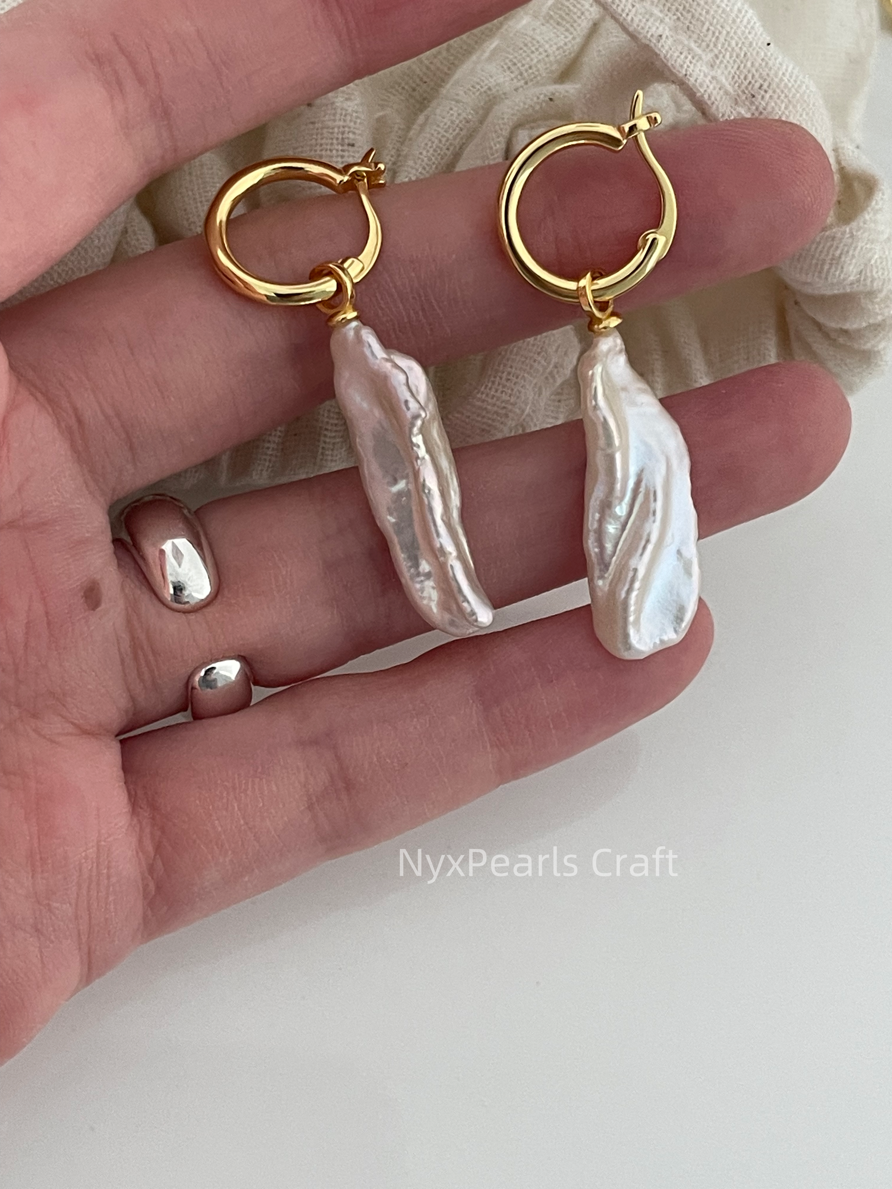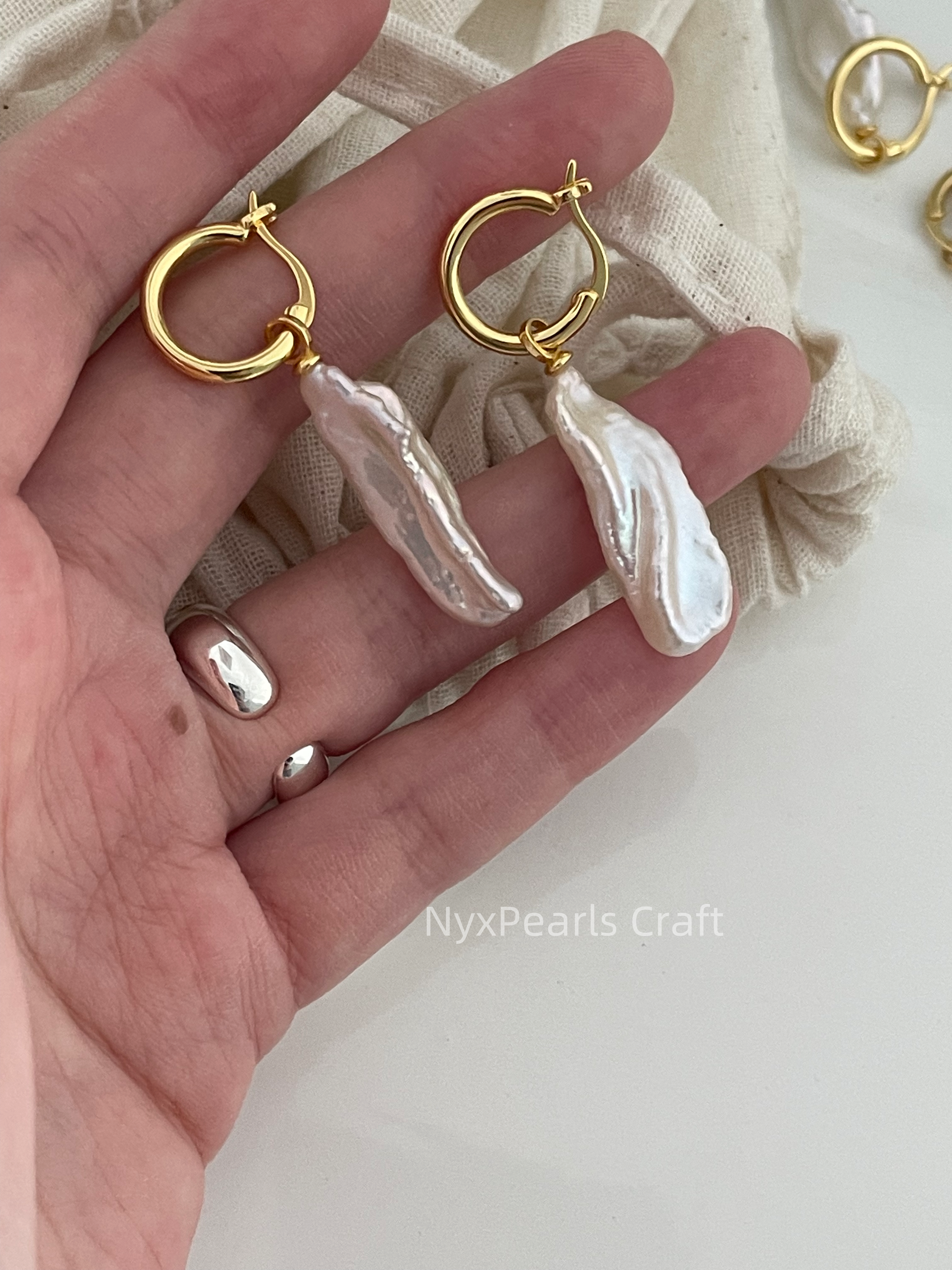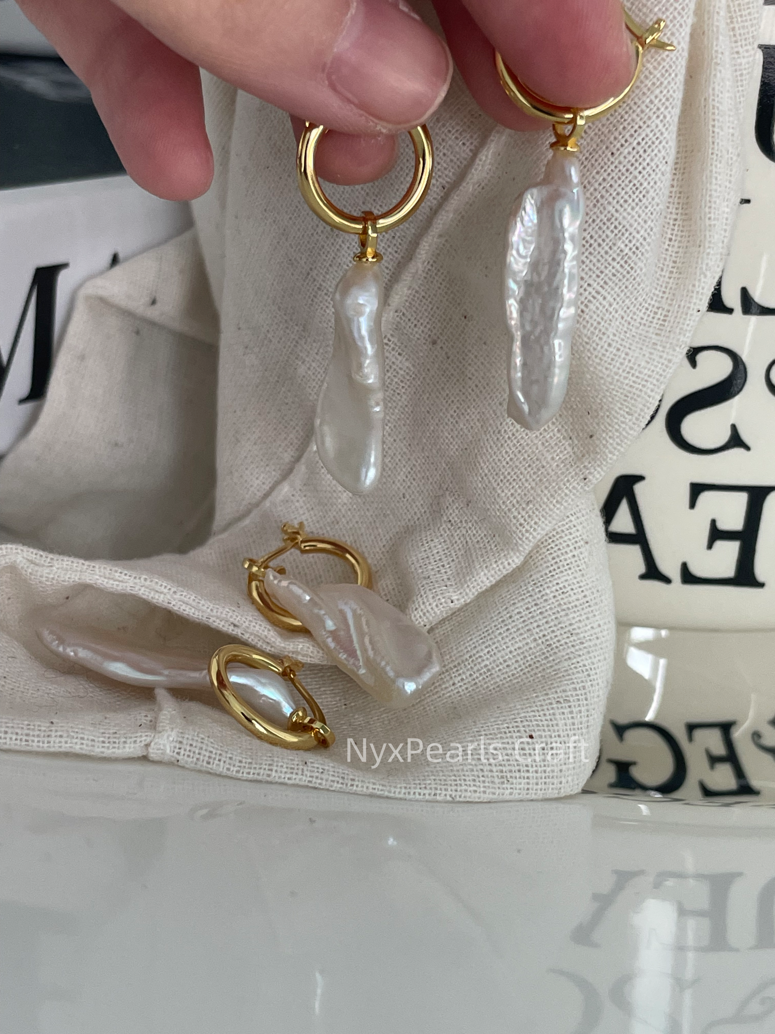 Turn heads with these best-selling feather-shaped pearl earrings, featuring elegant pipa pearls—natural freshwater pearls in a unique teardrop form. The soft curves of the feather design bring a light, flowing feel, while the 18K gold-plated sterling silver adds a touch of luxury and lasting shine.