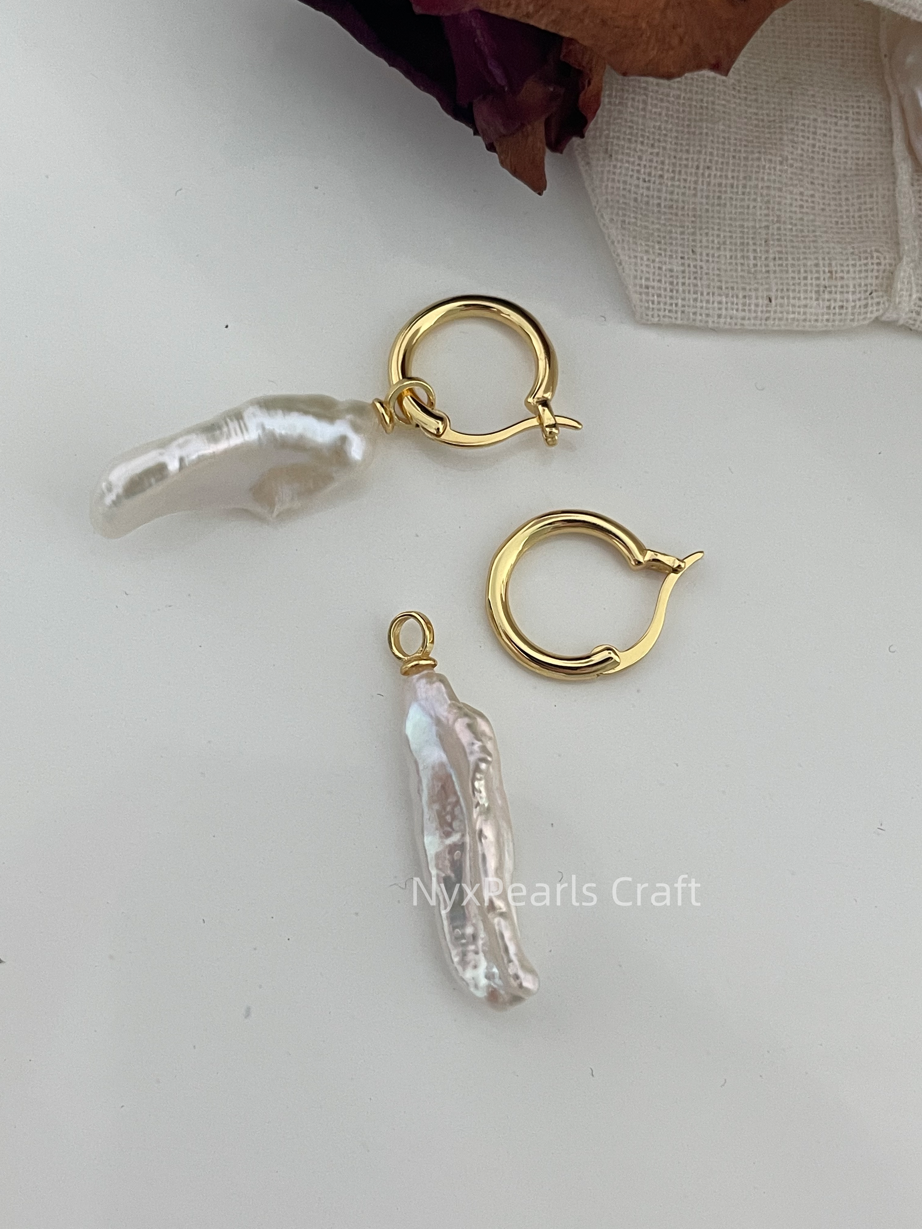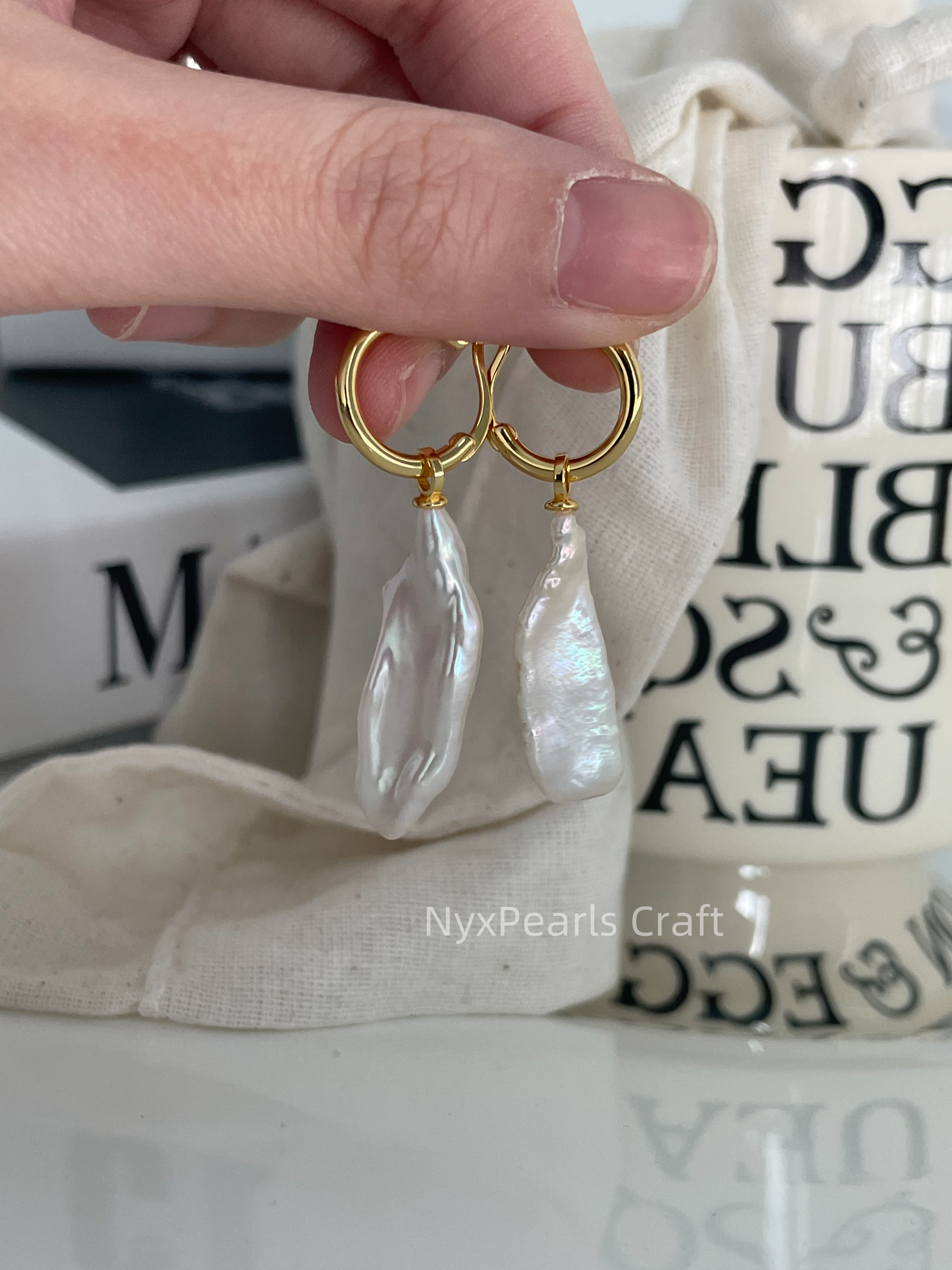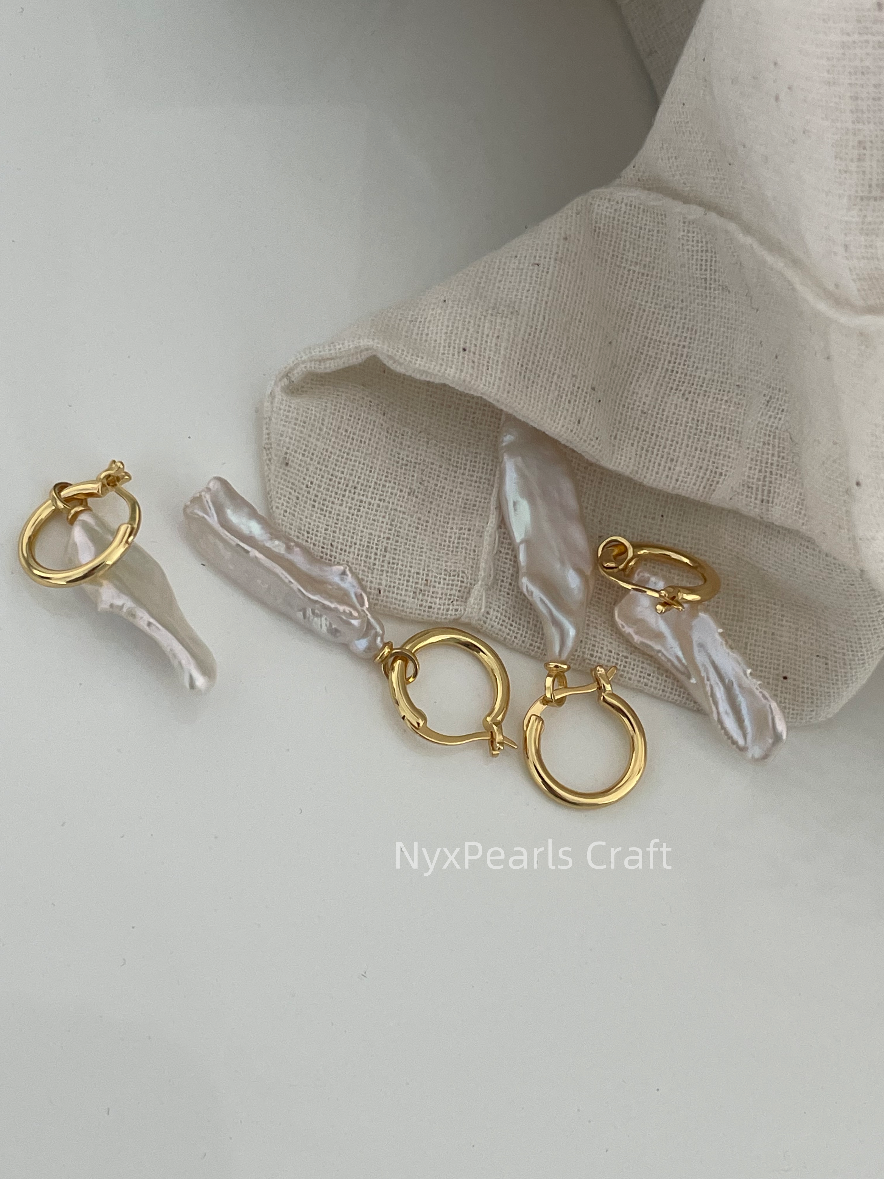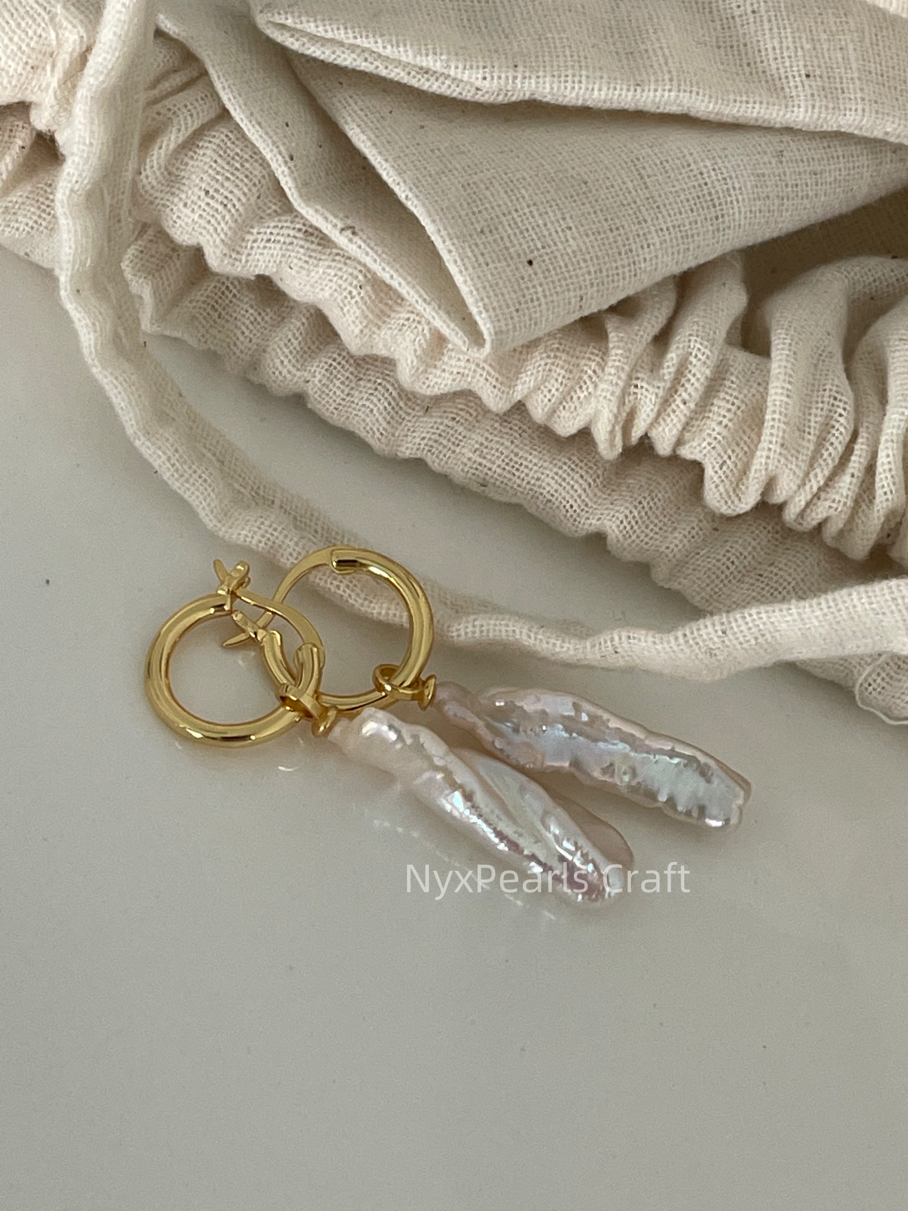 Turn heads with these best-selling feather-shaped pearl earrings, featuring elegant pipa pearls—natural freshwater pearls in a unique teardrop form. The soft curves of the feather design bring a light, flowing feel, while the 18K gold-plated sterling silver adds a touch of luxury and lasting shine.