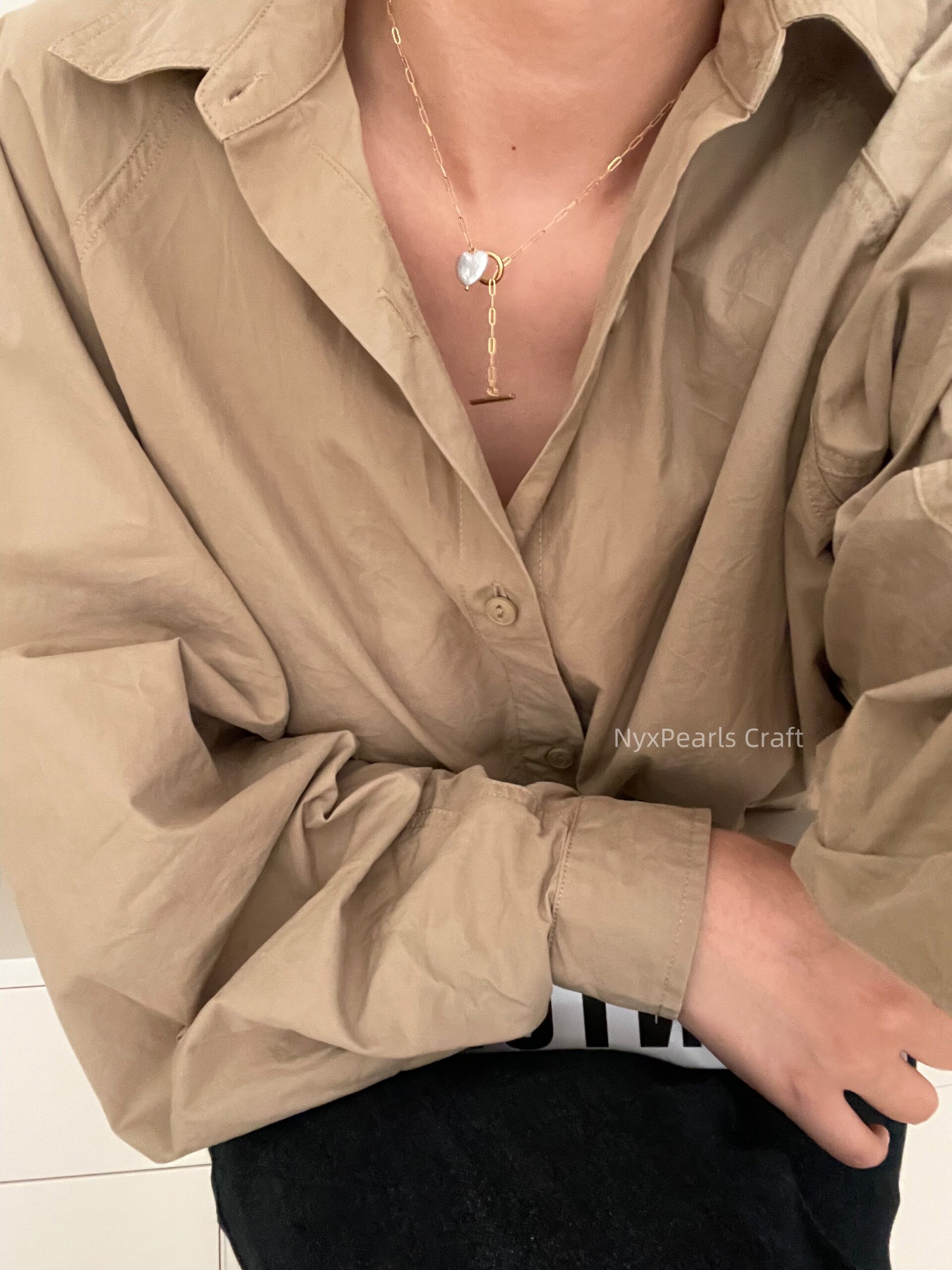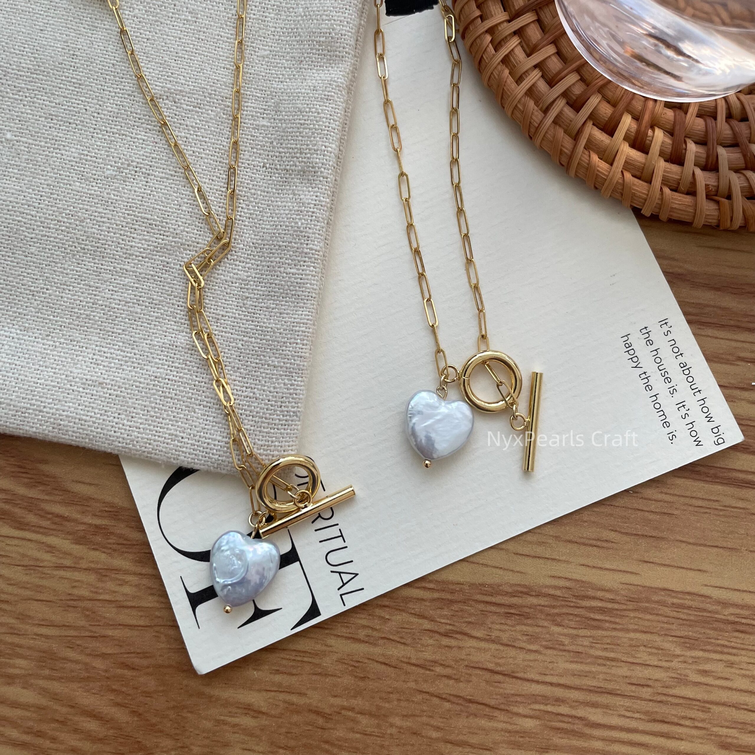 Elevate your jewelry collection with the 043 Heart Baroque Pearl OT Clasp Necklace. This exquisite piece features a distinctive heart-shaped baroque pearl, celebrated for its unique and organic form, symbolizing individuality and elegance. The necklace is crafted with a luxurious American 14K gold-filled chain, ensuring both durability and a radiant finish. The design is completed with a high-quality OT clasp imported from Japan, providing secure closure and a touch of international craftsmanship.