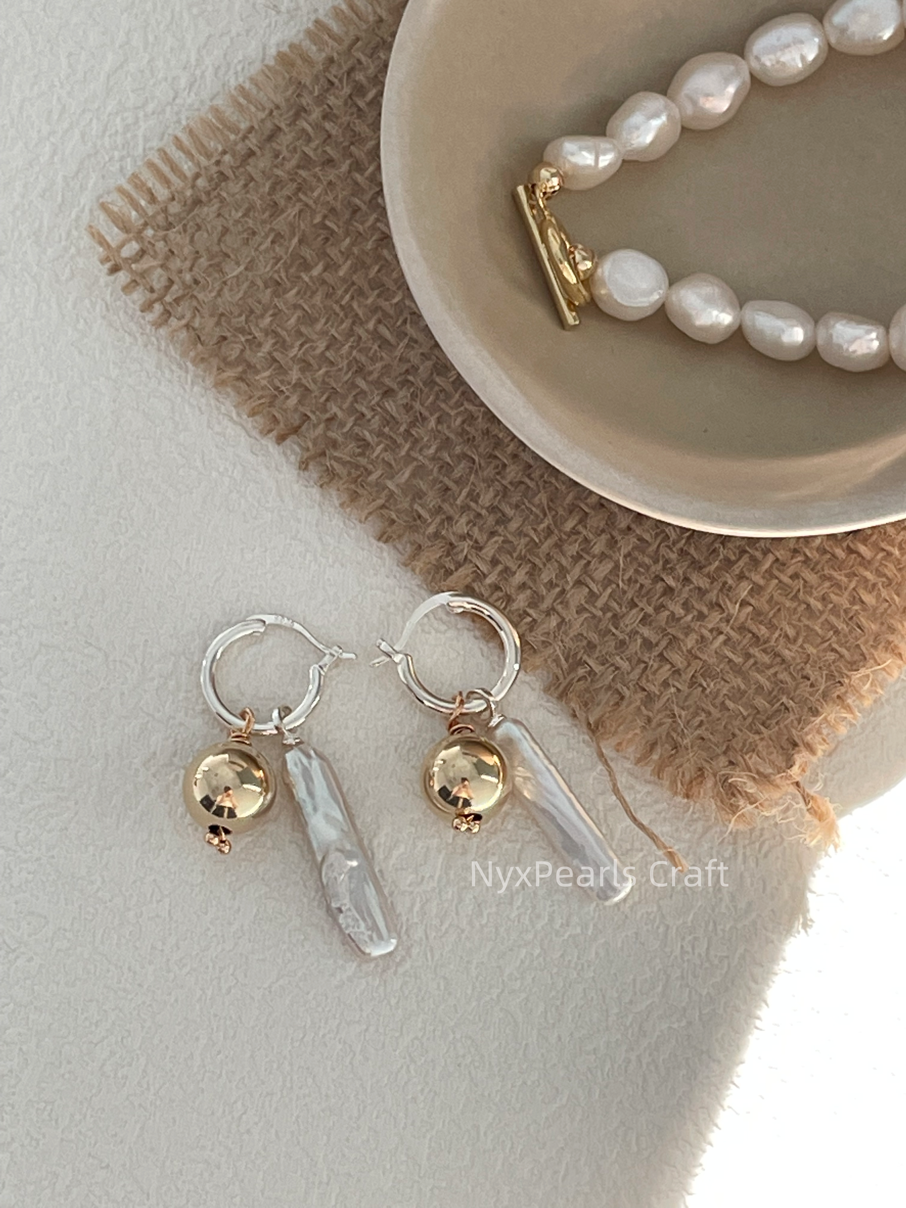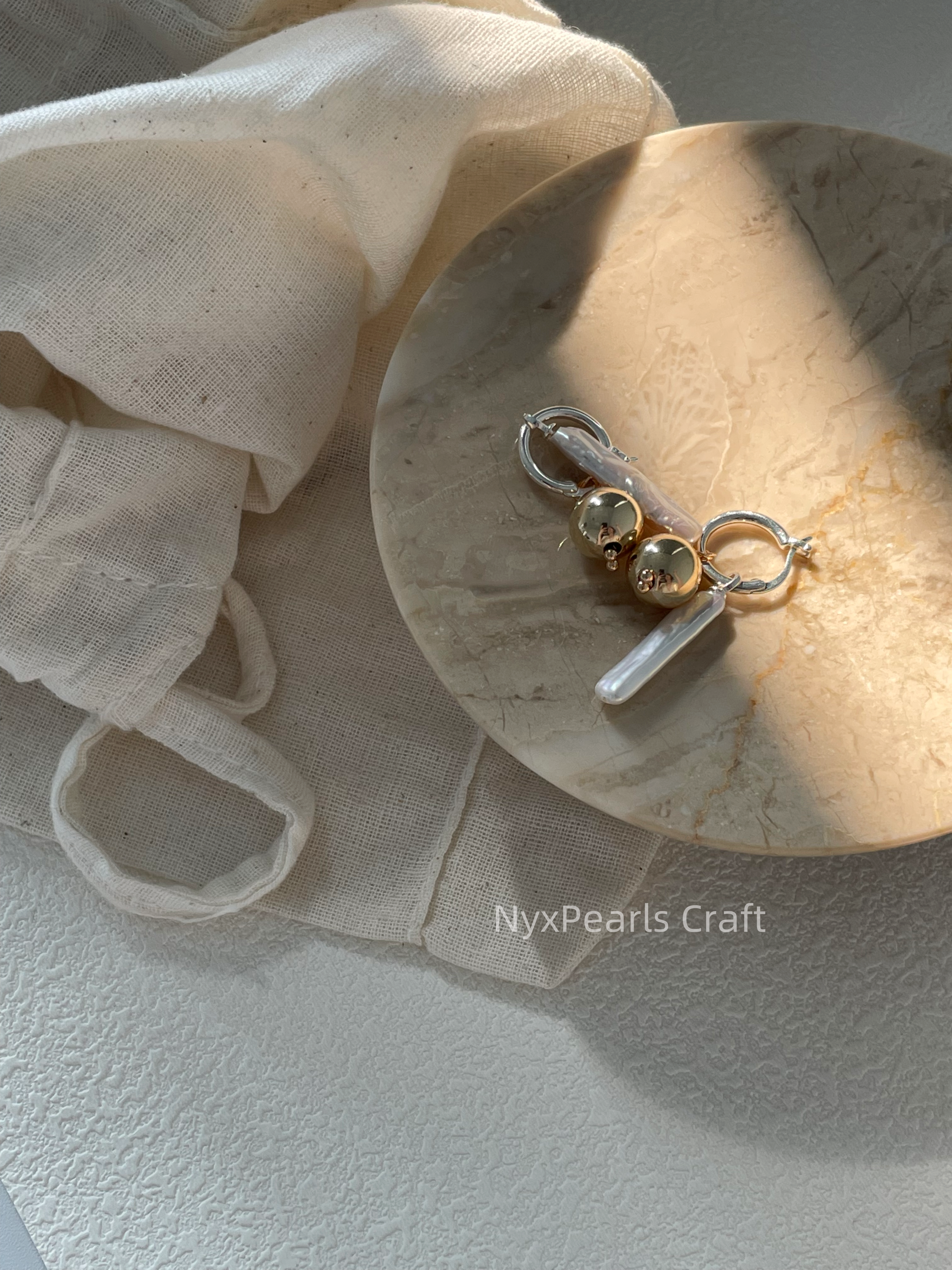 The 424 Gold Ball Baroque Earrings combine the classic beauty of baroque pearls with a modern twist. A luminous freshwater baroque pearl dangles elegantly from a delicate 18K gold vermeil ball, creating a stunning contrast between the organic pearl shape and the refined gold detailing.